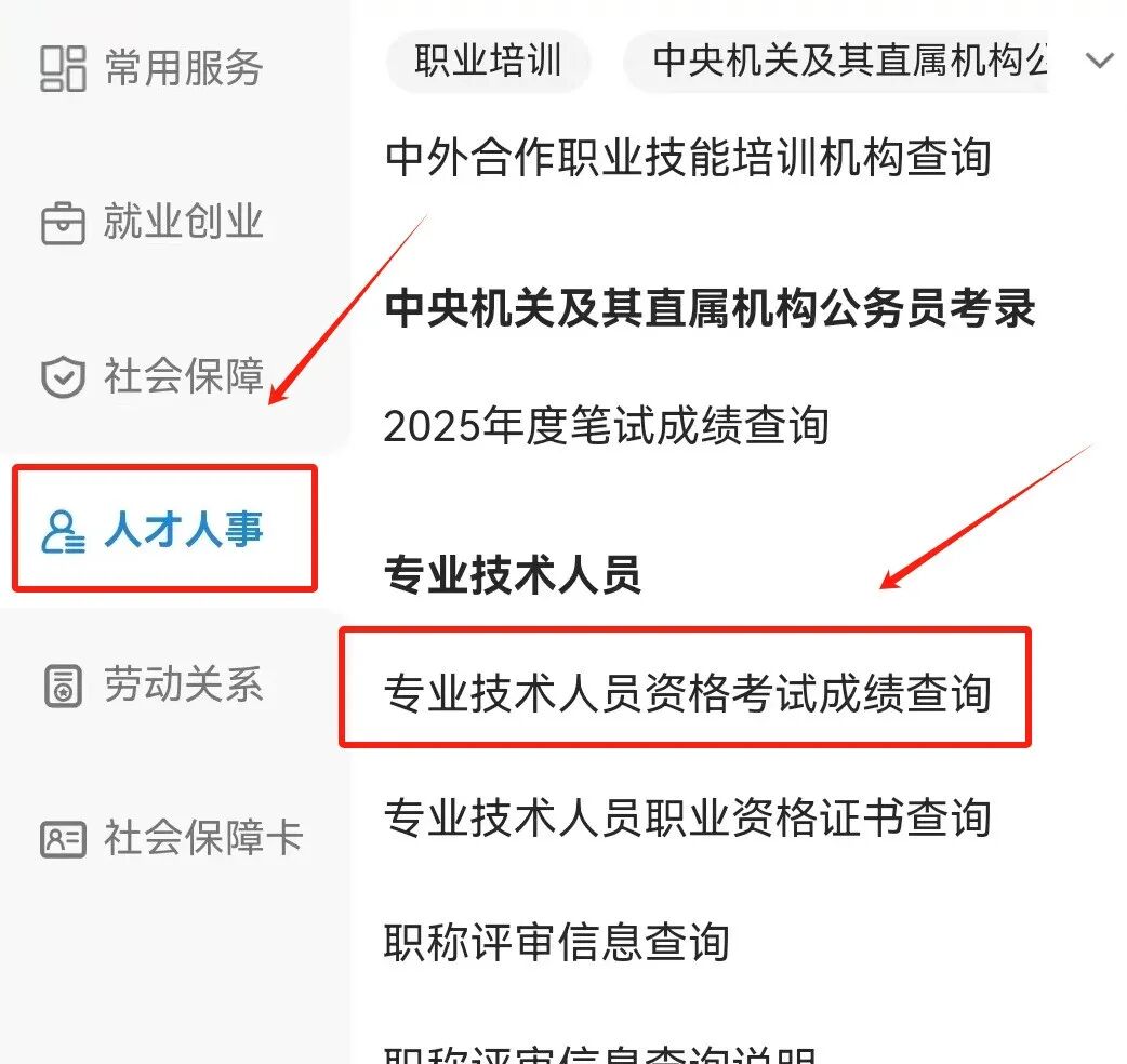 3、在打开【人社办事】页面中选择【人才人事】, 点右侧的【专业技术人员资格考试成绩查询】;