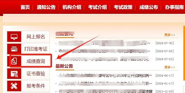 1、进入中国人事考试网,点击左侧【成绩查询】;